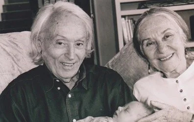 Mendek and his wife, Edith, with their newborn grandchild, Nina, 2002