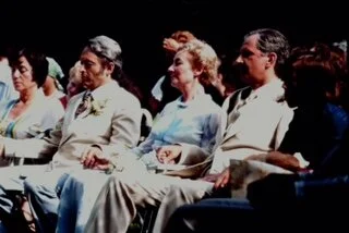 Myra’s parents, Edith and Mendek Rubin (far left) with Judith and John Saly at a Pathwork marriage vow renewal ceremony, mid-1970s