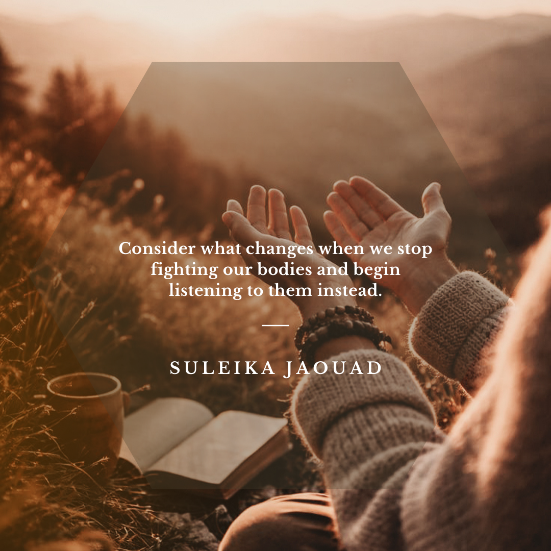 Suddenly, I remembered my letter of gratitude from my body, and my answer became obvious: the most sacred thing I’d done that week was to let my body speak. And then I realized the answer went even deeper: the most sacred thing I’d done was treating my body like it was sacred.